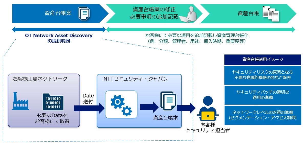 NTTセキュリティ・ジャパン株式会社(以下NTTセキュリティ・ジャパン)は8月8日、OTセキュリティ対策(工場やプラントなどの制御システムをサイバーセキュリティ脅威から保護するための対策)の初めの一歩である資産台帳作成支援に特化したサービス「OT Network Asset Discovery」の提供を開始すると発表。