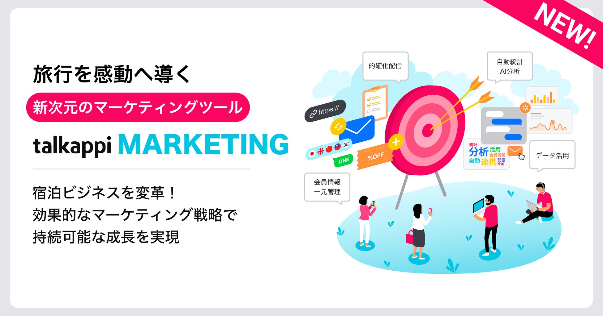 株式会社アクティバリューズ「(東京都渋谷区)以下、アクティバリューズ」は2月13日、日本の代表的なホテルや旅館が多く利用している顧客体験プラットフォーム「talkappi(トーカッピ)」に、宿泊業界向けの新しいマーケティング支援ツール「talkappi MARKETING(トーカッピ・マーケティング)」を、2024年3月から提供開始する。